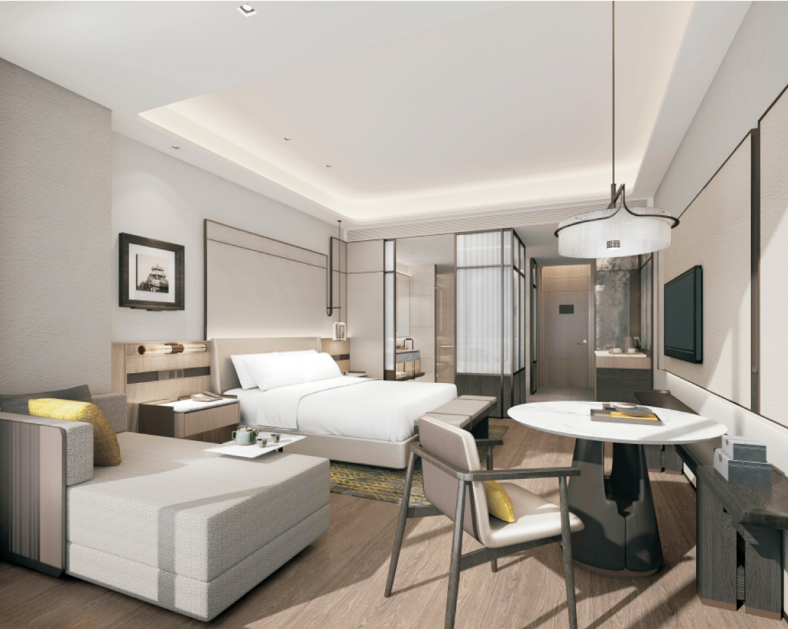 酒店內(nèi)戶型高達17種,共計261套,其中標(biāo)準(zhǔn)大床房91套,標(biāo)準(zhǔn)雙床房32套,大床房25套,雙床房54套,行政大床房18套,行政雙床房17套等
