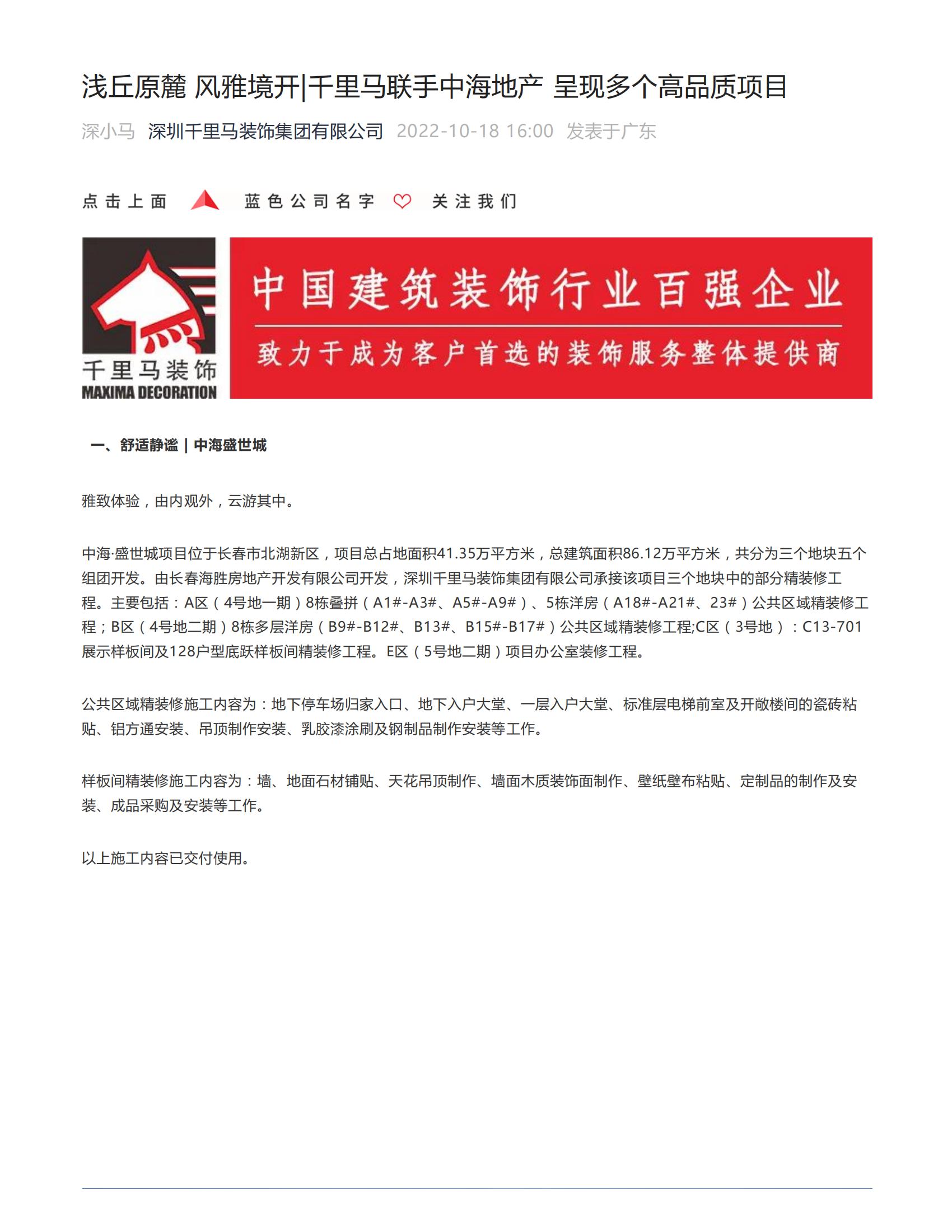 深圳千里馬裝飾集團近期中標(biāo)項目